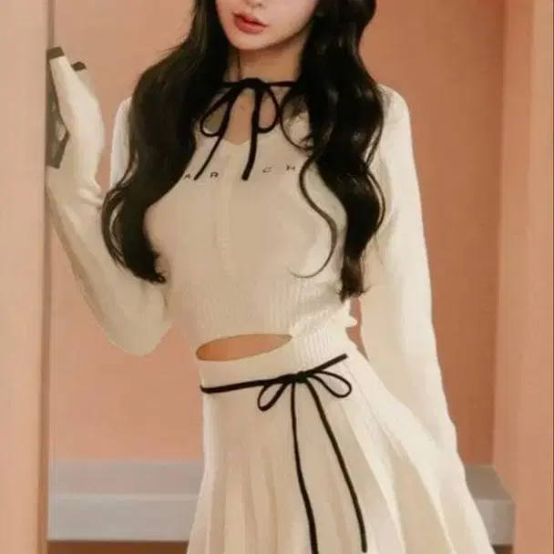 darich 허리 오픈 리본 디자인 니트 미니 원피스