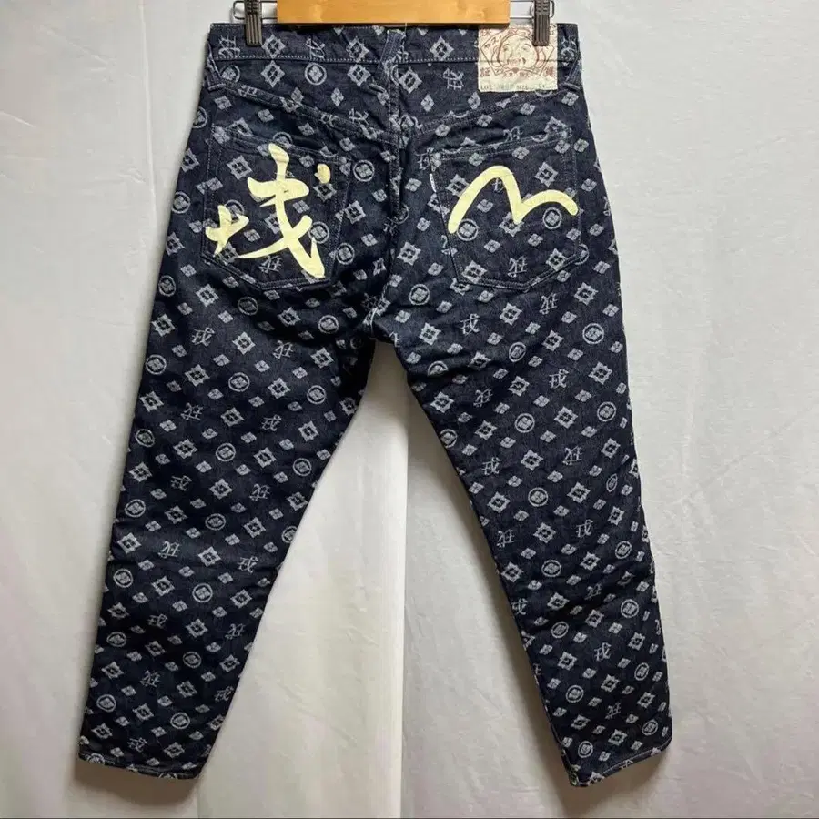EVISU 에비수 5500 자카드 올 패턴 데님 팬츠 페인트