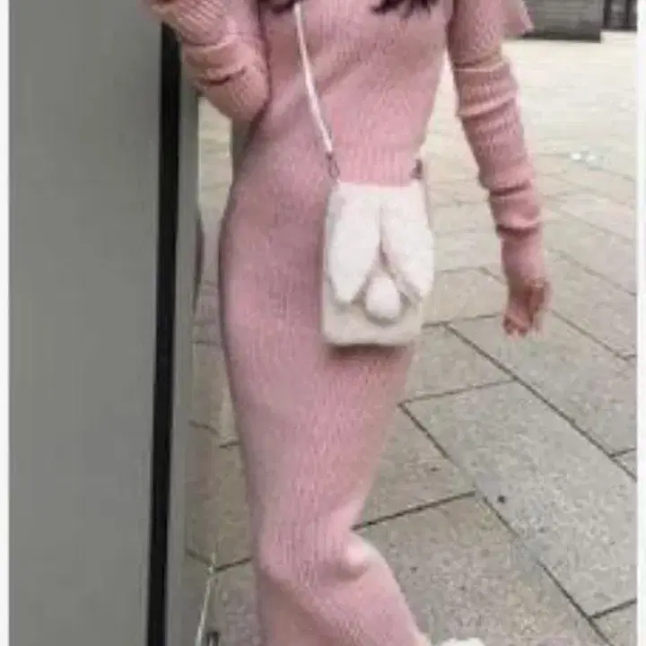 암워머 부착 니트 원피스 dr569 핑크
