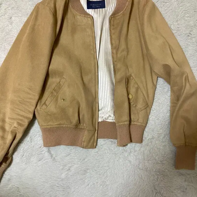 JUSGLITTY 베이지 스웨이드풍 점퍼