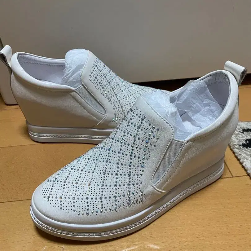 화이트 비쥬 장식 슬립온 스니커즈