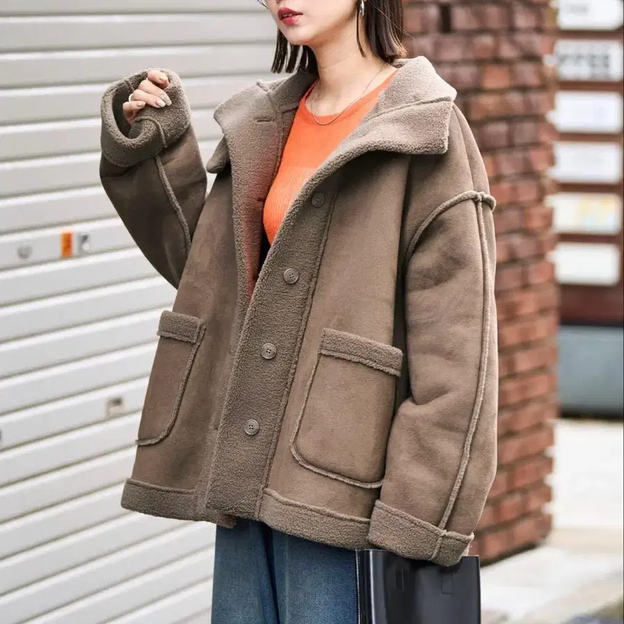 ● 뛰어난 촉감의 무스탕과 옷깃, 소매 보아가 신체를 따뜻하게 감싸는 스탠드 카라 코트