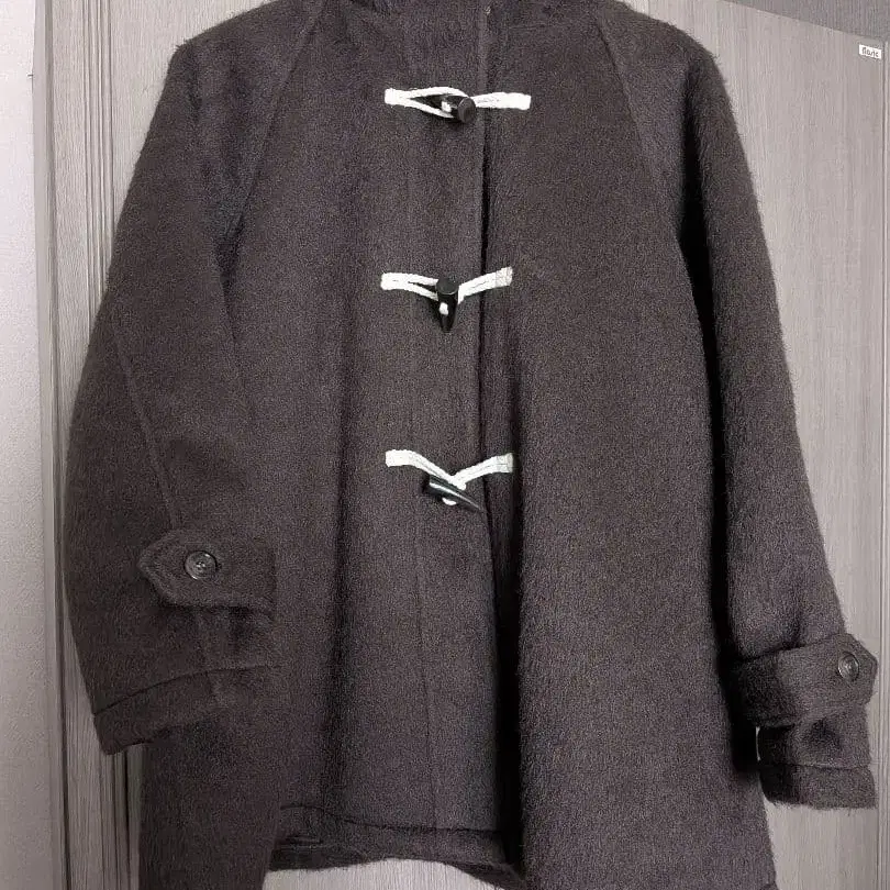 미사용품 DISCOAT 브라운 후드 부착 더플 코트 F 연내 처분