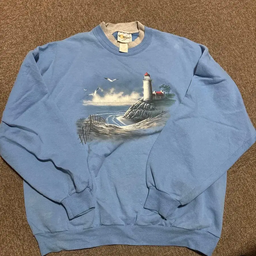 MORNING SUN 파랑 등대 프린트 맨투맨 L