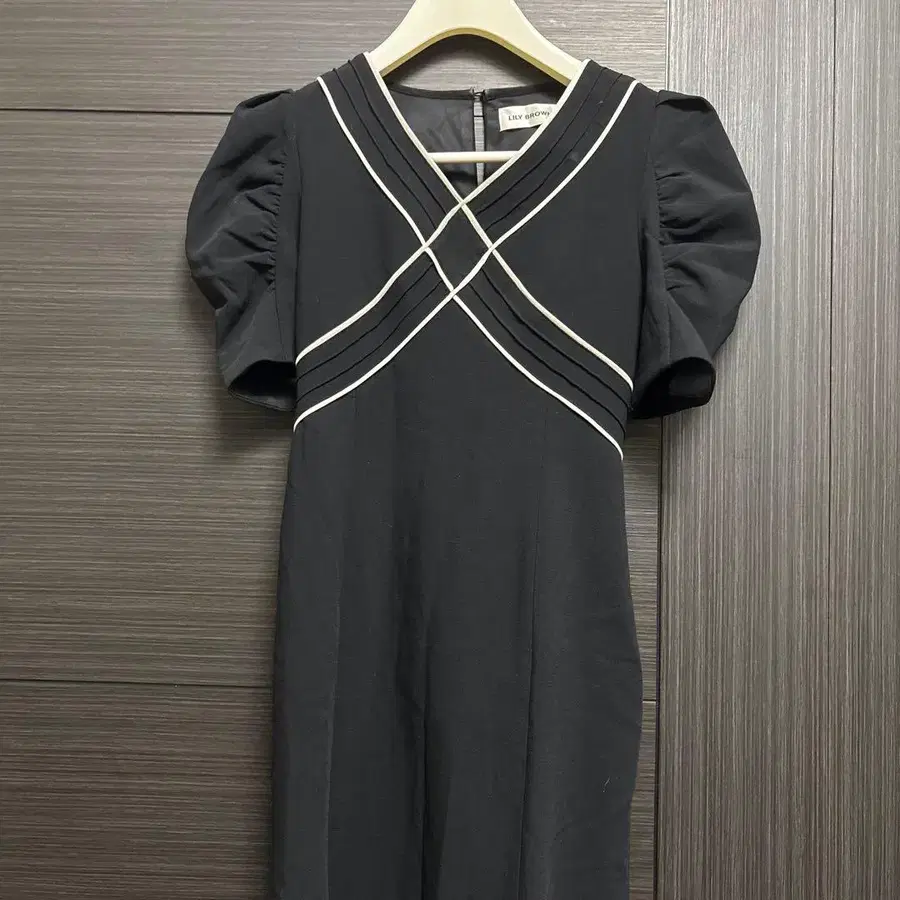 릴리 브라운 바이컬러 파이핑 크로스 롱 원피스