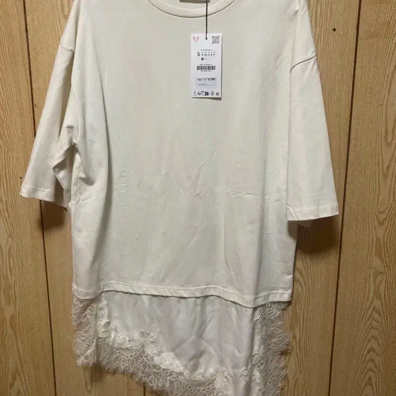 새상품 ZARA 자라 불규칙 레이스 장식 화이트 반팔 티셔츠