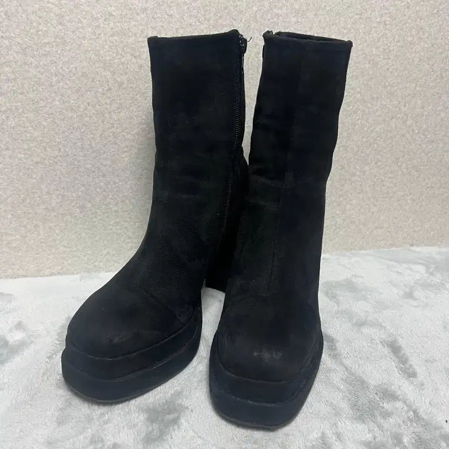 [새상품급] 키다리 아저씨 통굽 블랙 스웨이드 힐 부츠
