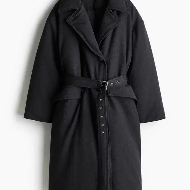 H&M 벨티드 패디드 코트 다크 그레이 롱 코트