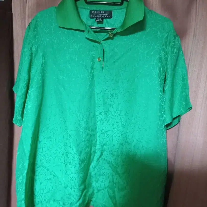 VICO 그린 최고급 차이나 실크 꽃무늬 반팔 피케 셔츠 빅 사이즈