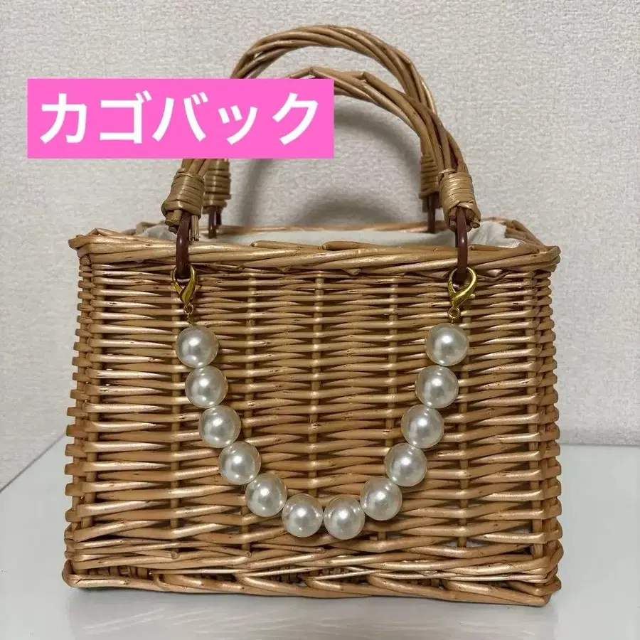 유카타 바스켓백 베이지 펄 비즈 장식
