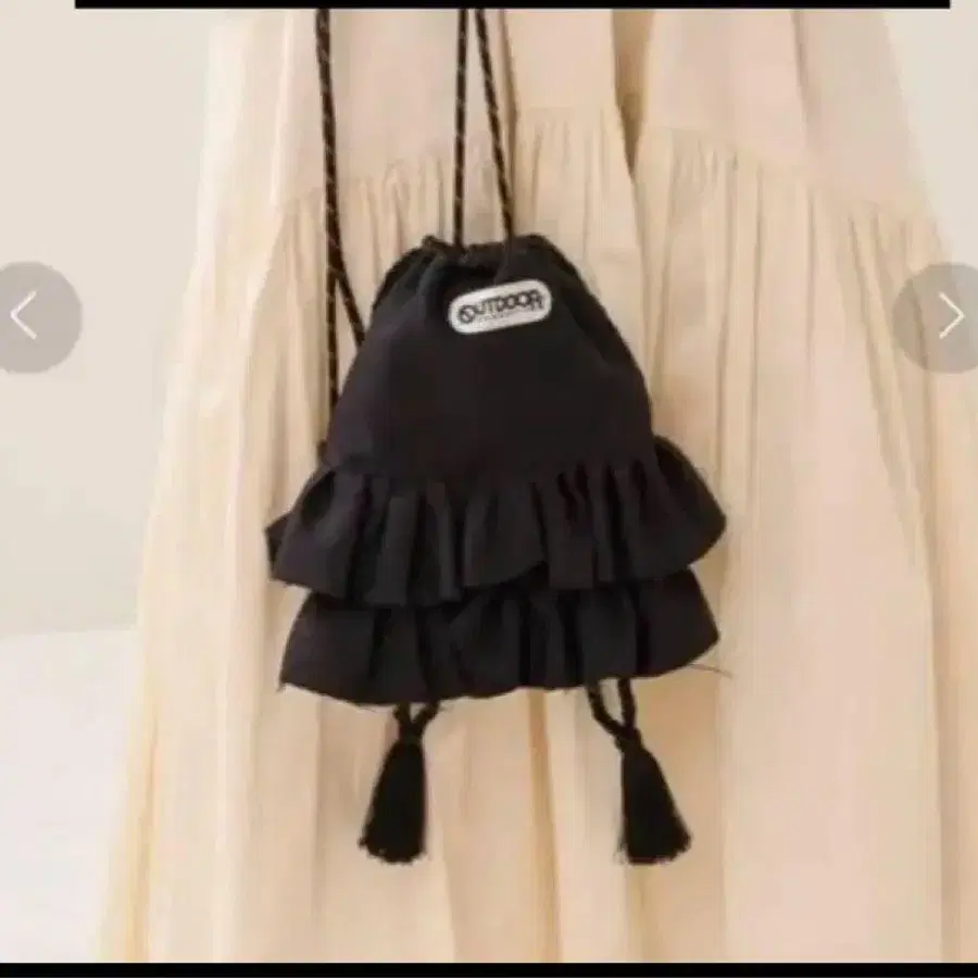 프릴 디자인의 블랙 숄더백, 경량 나일론 소재로 사용하기 편리합니다.