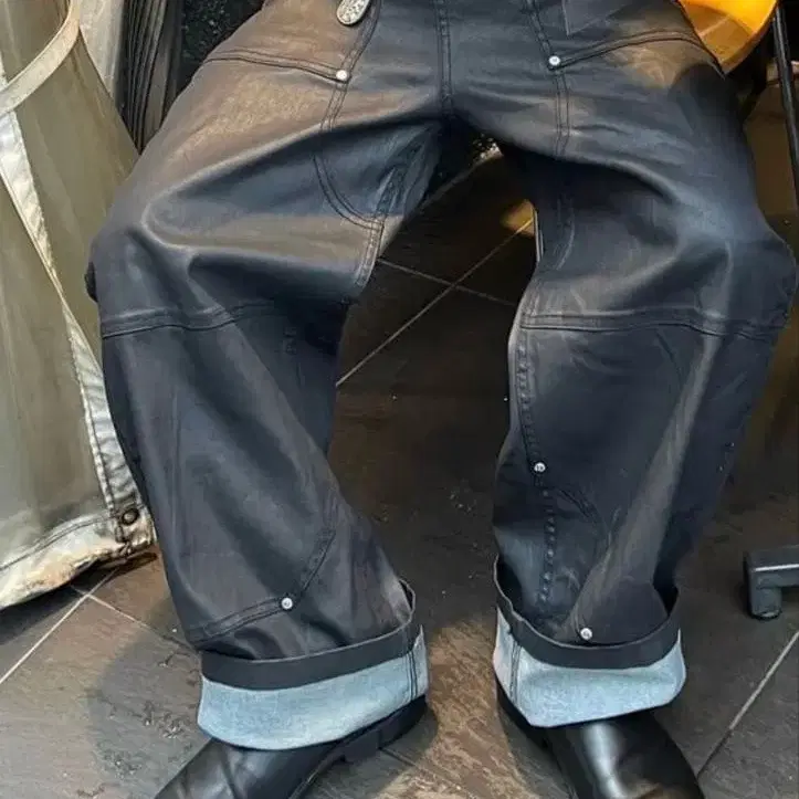 블랙 와이드 데님 팬츠