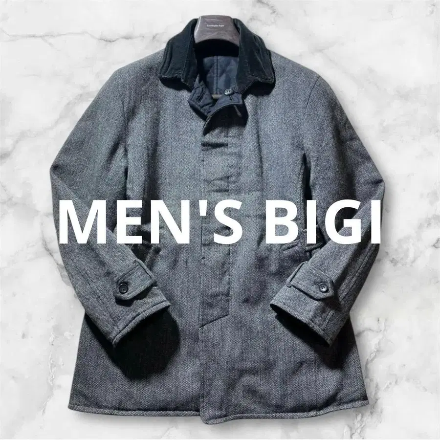 [새상품급] MEN'S BIGI 남성용 비기 스텐카라 코트 충전솜 헤링본