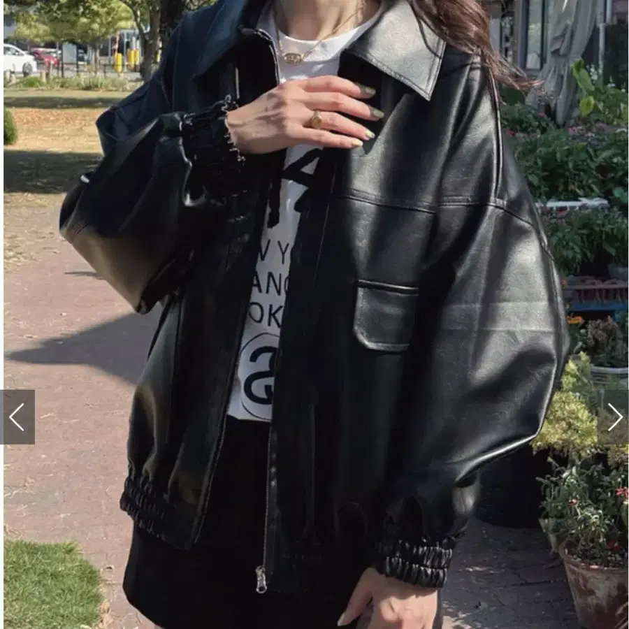 트렌디한, 부드러운 인조 가죽 소재의 블루종.