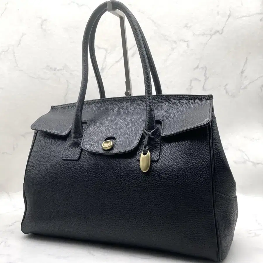 토프앤로드스톤 토트백 루프 버튼 주름 가죽 블랙 A4 숄더
