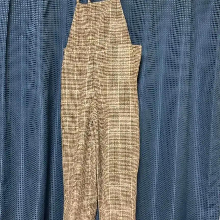 체크 무늬 살로펫 오버롤 브라운 계열 캐주얼