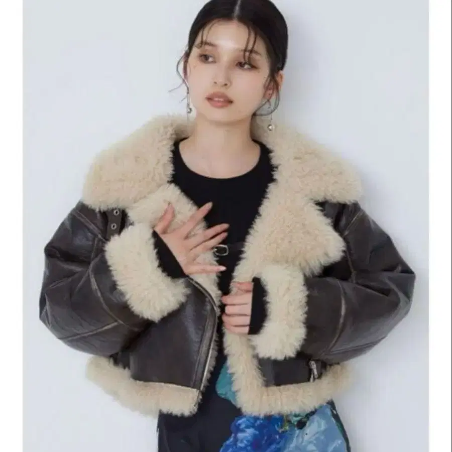 MURUA 빈티지 라이크 숏 페이크 무스탕 브라운