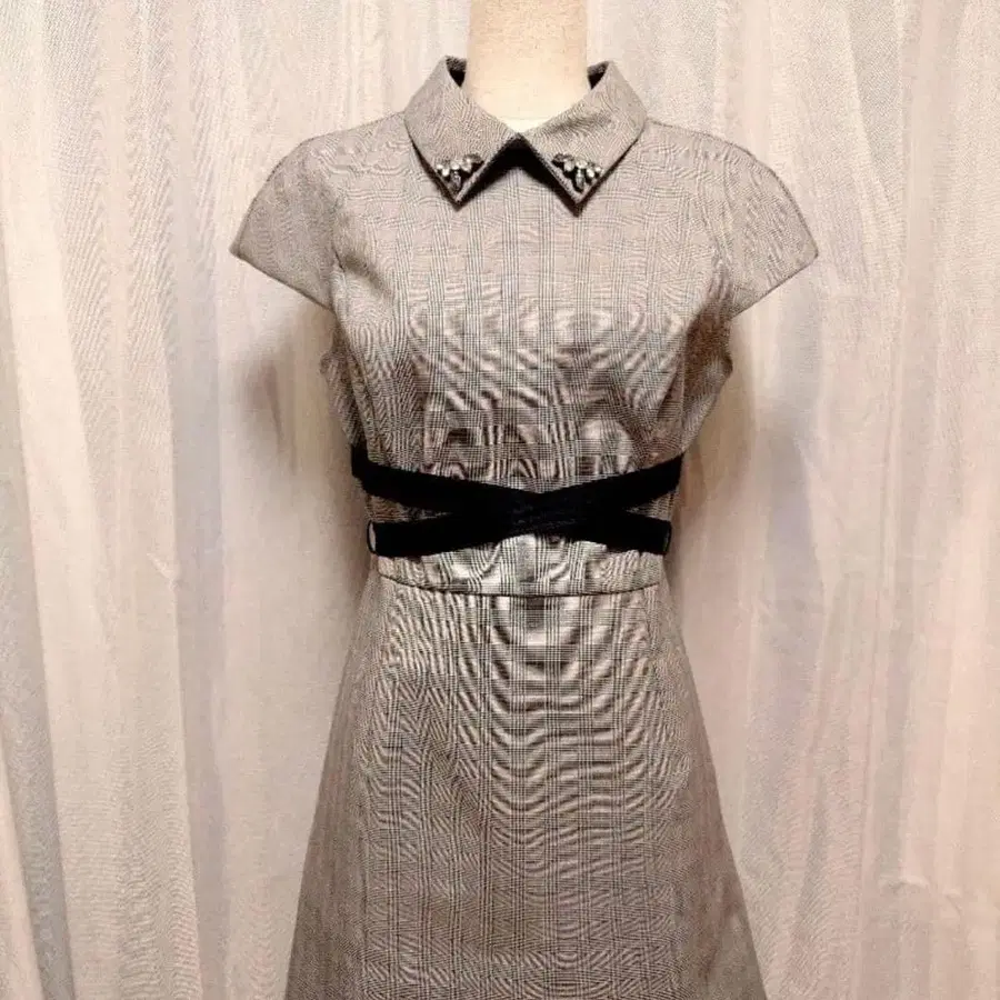 ZARA BASIC 비쥬 포함 체크 무늬 반팔 원피스 M 사이즈