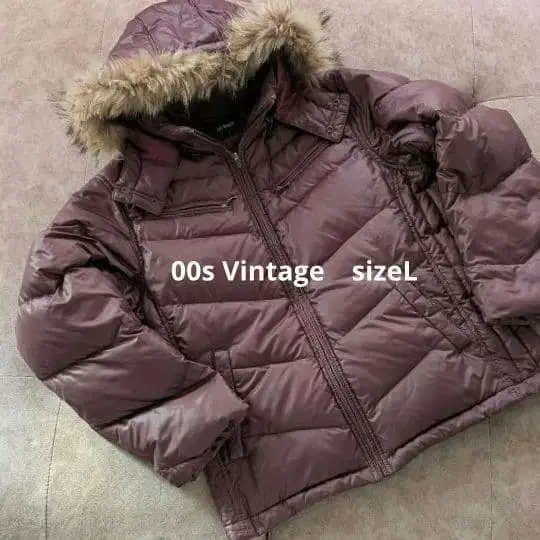 남성용 00s 퍼 달린 다운 자켓 HIT MAKER 적갈색 Y2K