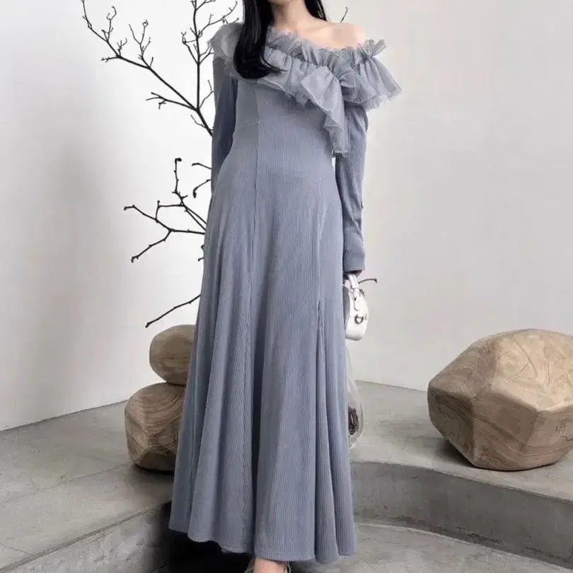 택 포함 새상품 Dazzlin 크로스 프릴 컷 원피스 S 블루
