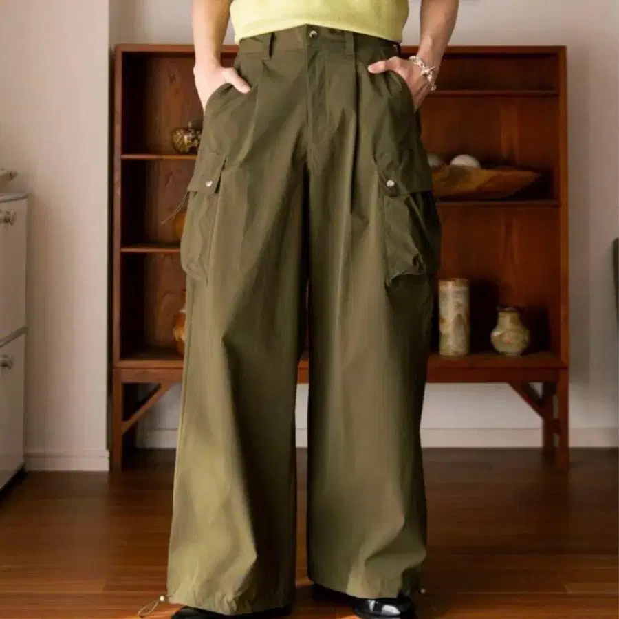 Soerte 카고 팬츠 올리브 카키 사이드 포켓 나일론