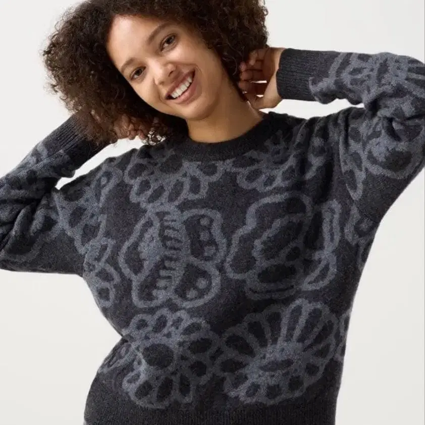새상품 유니클로 마리메꼬 라무 크루넥 스웨터 XL 블랙