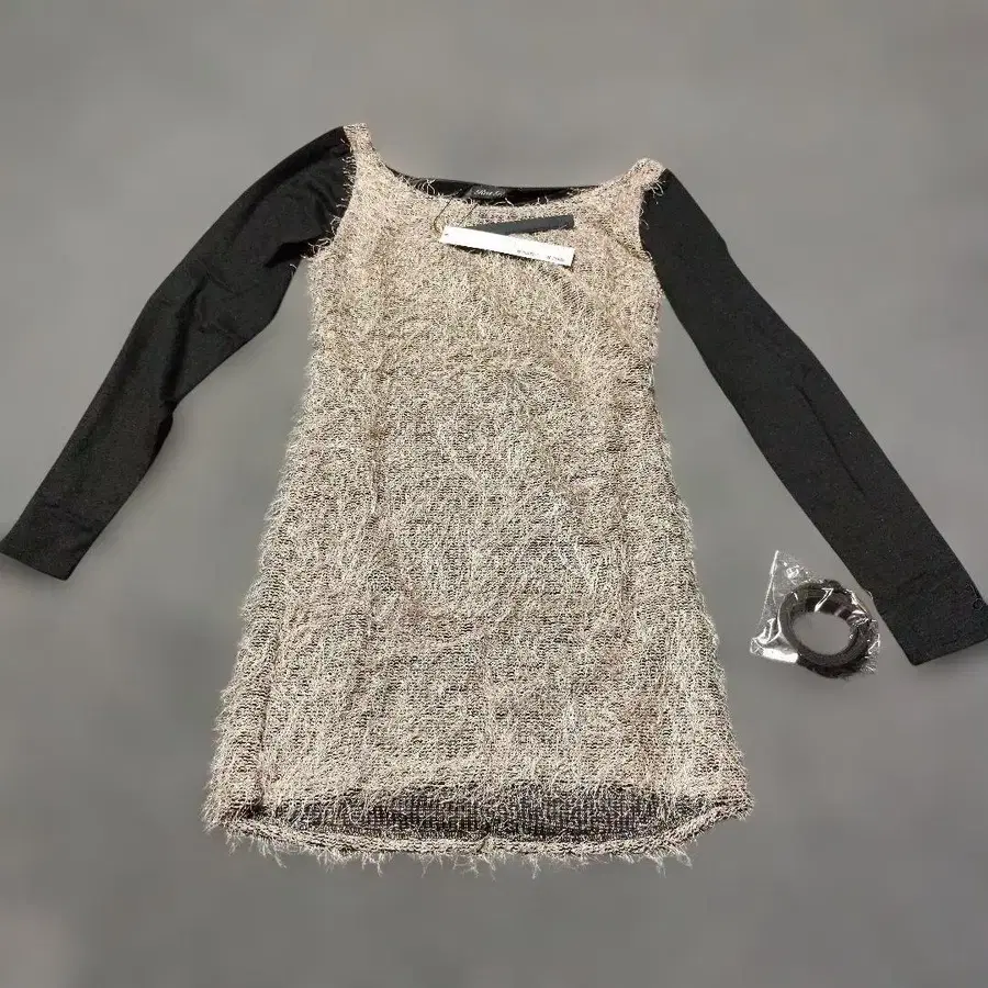 라트 로엔 라메 믹스 긴팔 무릎 기장 원피스 벨트 포함