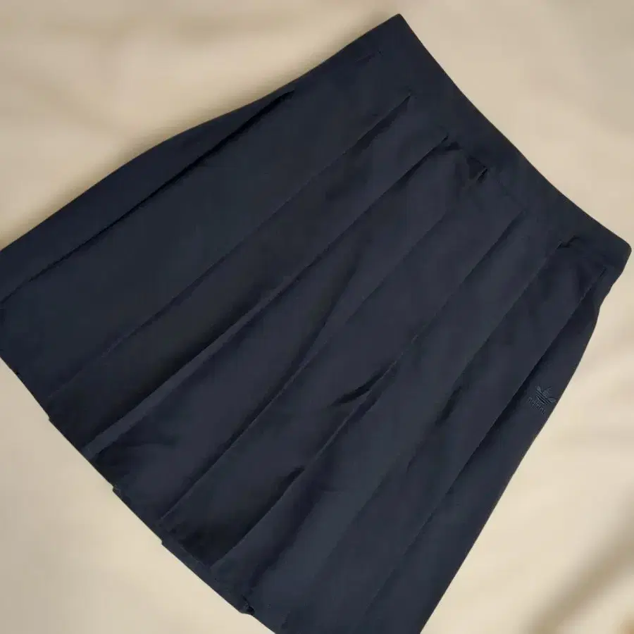 자수 로고가 멋진 네이비 플리츠 스커트입니다.