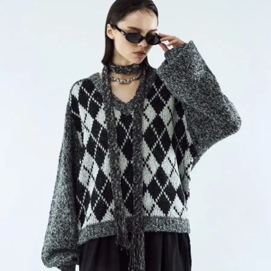 [ Argyle melange V-neck knit / 아가일 멜란지 V넥 니트 ]