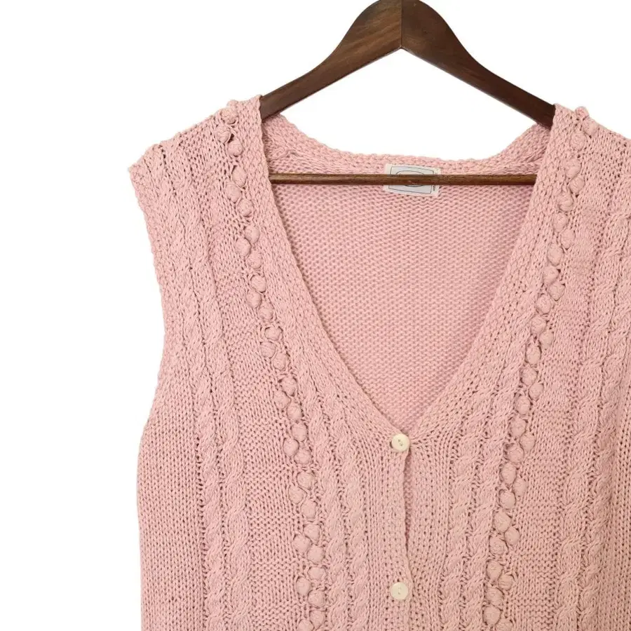 [새상품급] 보르지 핸드 니트 베스트 케이블 짜임 핑크 코튼