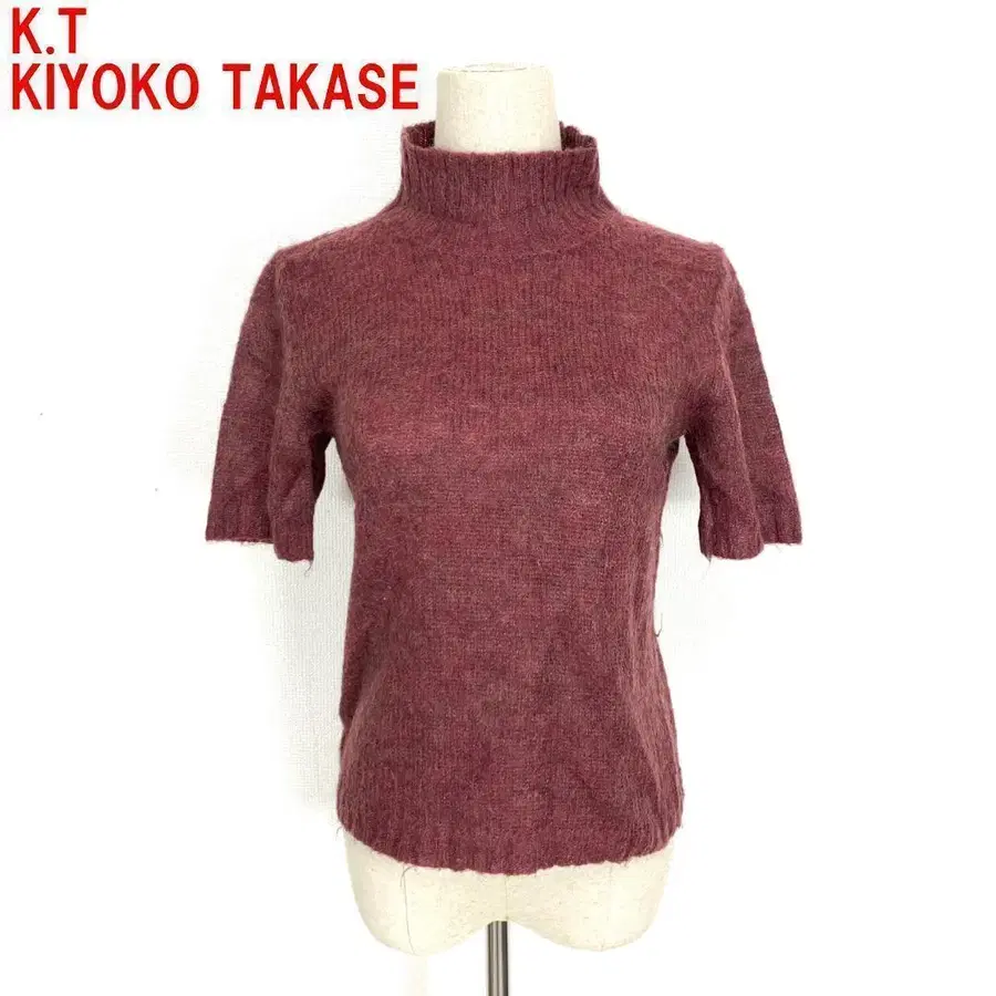 A4242 키요코 타카세 반팔 니트 스웨터 울 하이넥 브라운 M