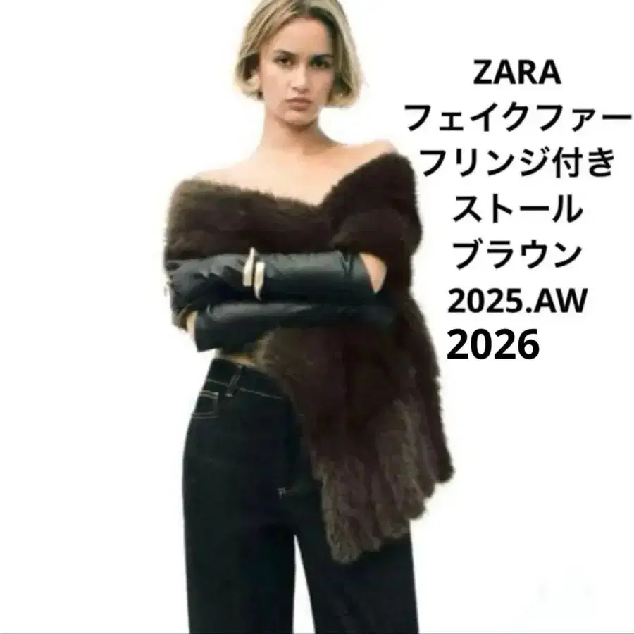 ZARA 자라 인조 모피 프린지 부착 스톨 브라운 퍼 스톨
