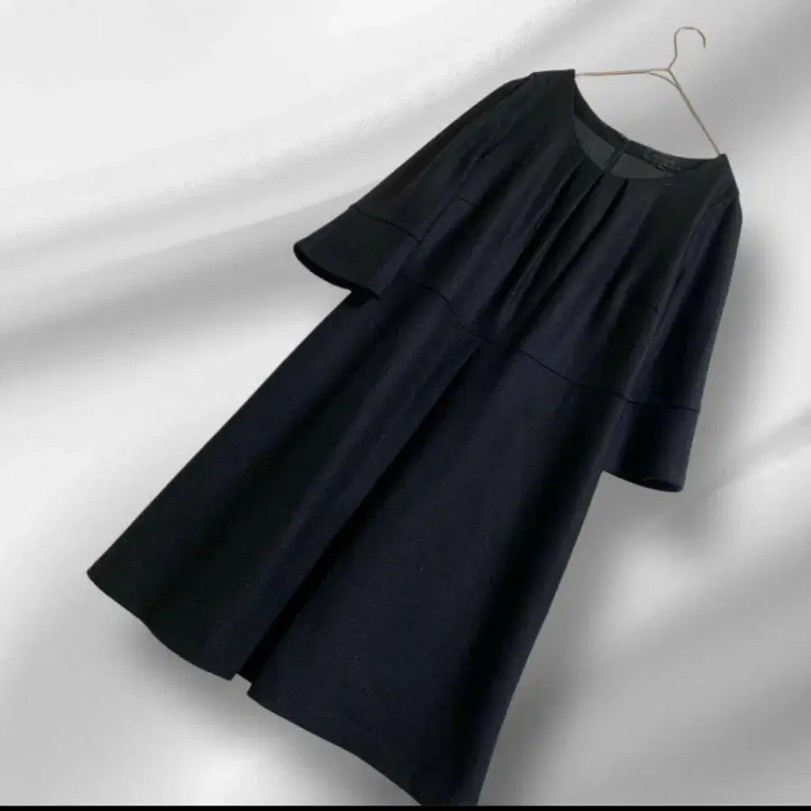 빅 사이즈! 언타이틀/울/프론트 플리츠 원피스/블랙/44