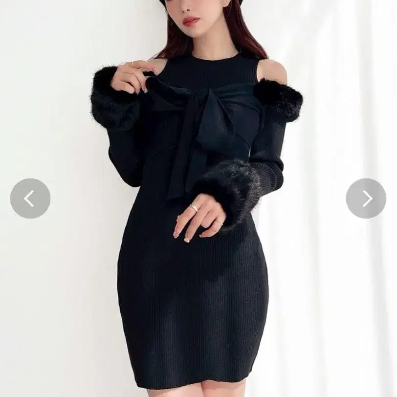 [새상품] RESEXXY 포인트 인조 모피 미니 니트 원피스 블랙