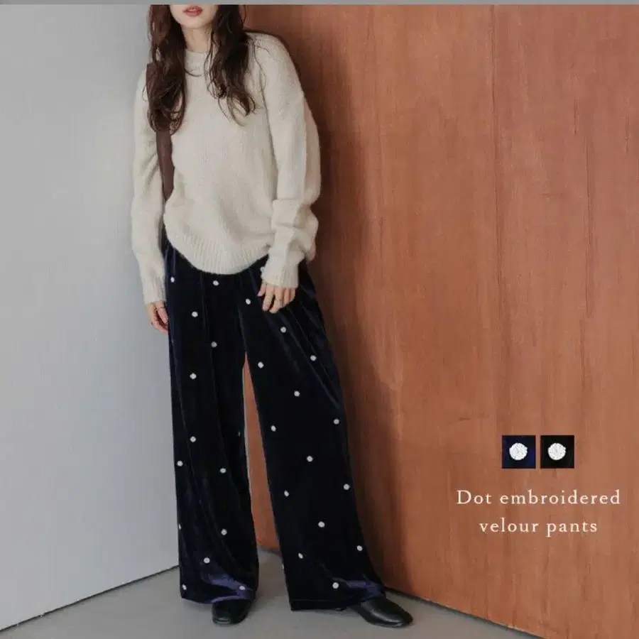 La-gemme 이번 시즌 도트 디자인 벨로아 와이드 팬츠