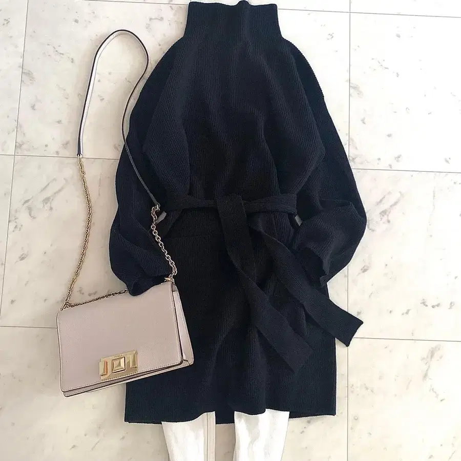• mystic 두꺼운 원단 니트 블랙 리본 포함 리브 니트