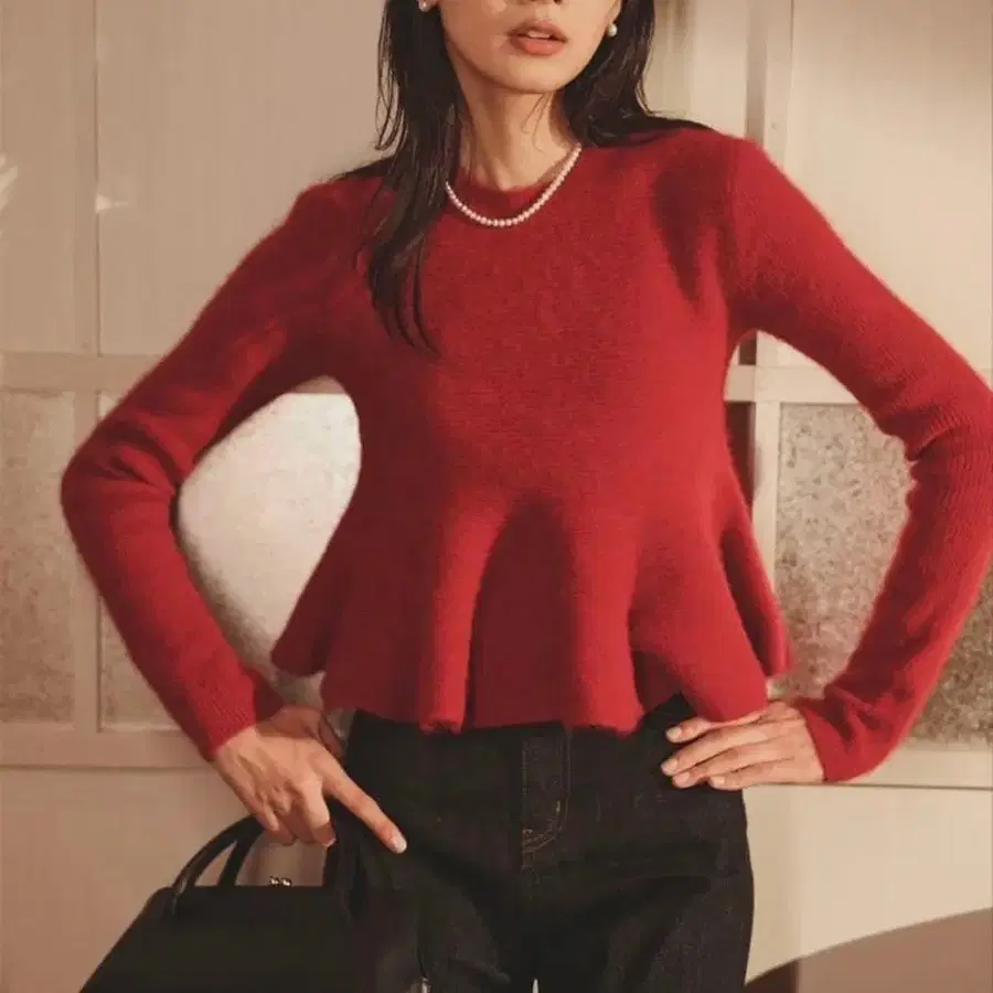 anuans 페플럼 숏 니트탑 레드 2