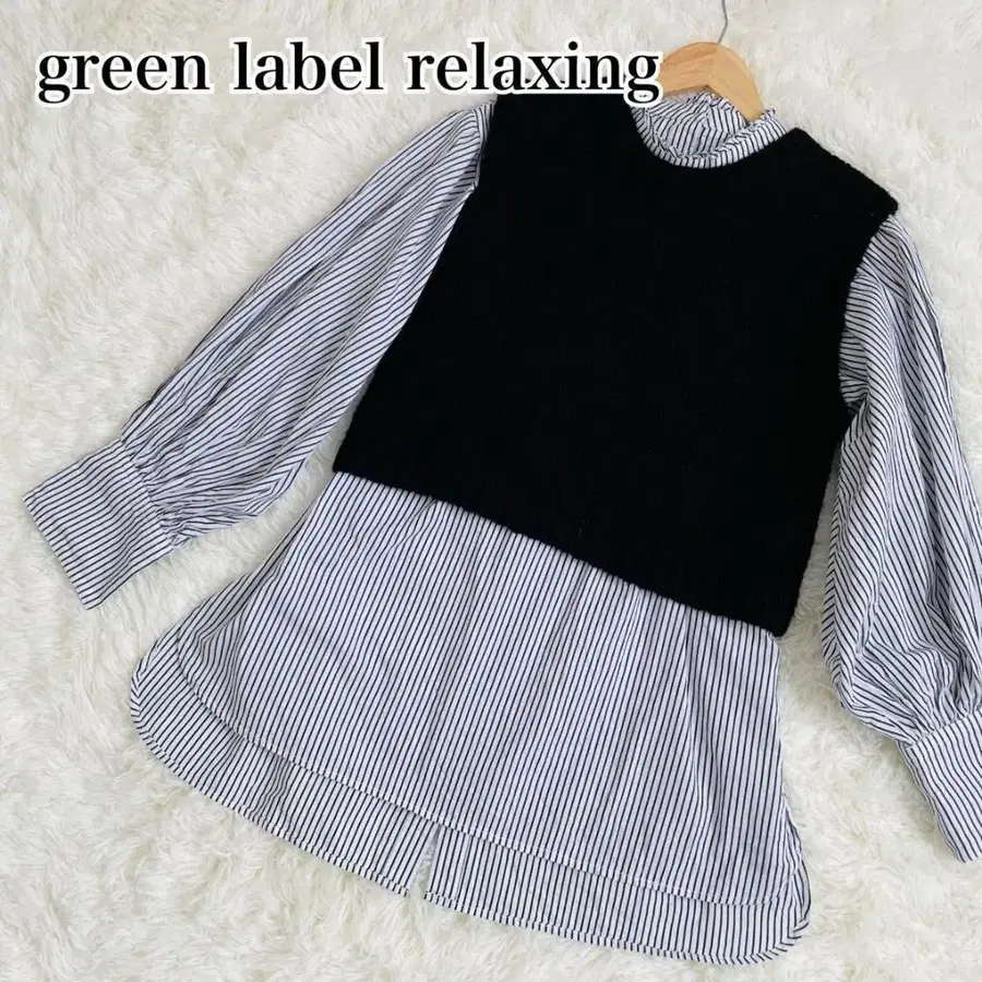 그린 라벨 릴랙싱 스트라이프 프릴 블라우스 베스트 니트 레이어