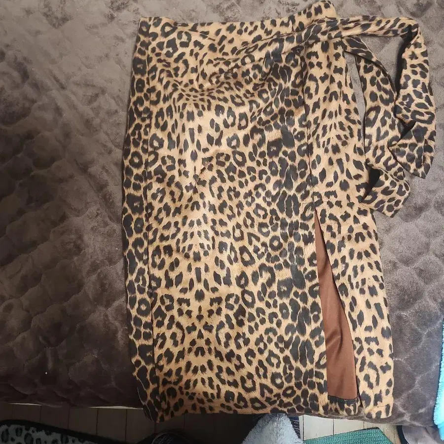 레오파드 무늬 타이트 스커트 사이드 슬릿 포함