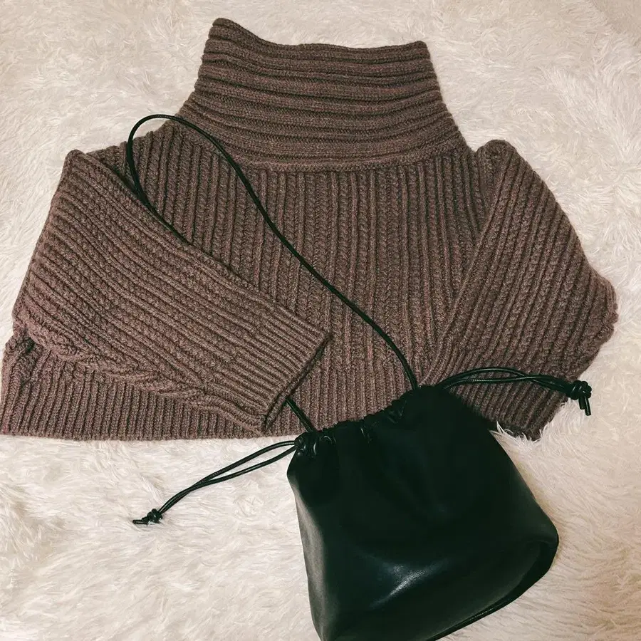 SNIDEL 리브 하이넥 아지메 스웨터 브라운