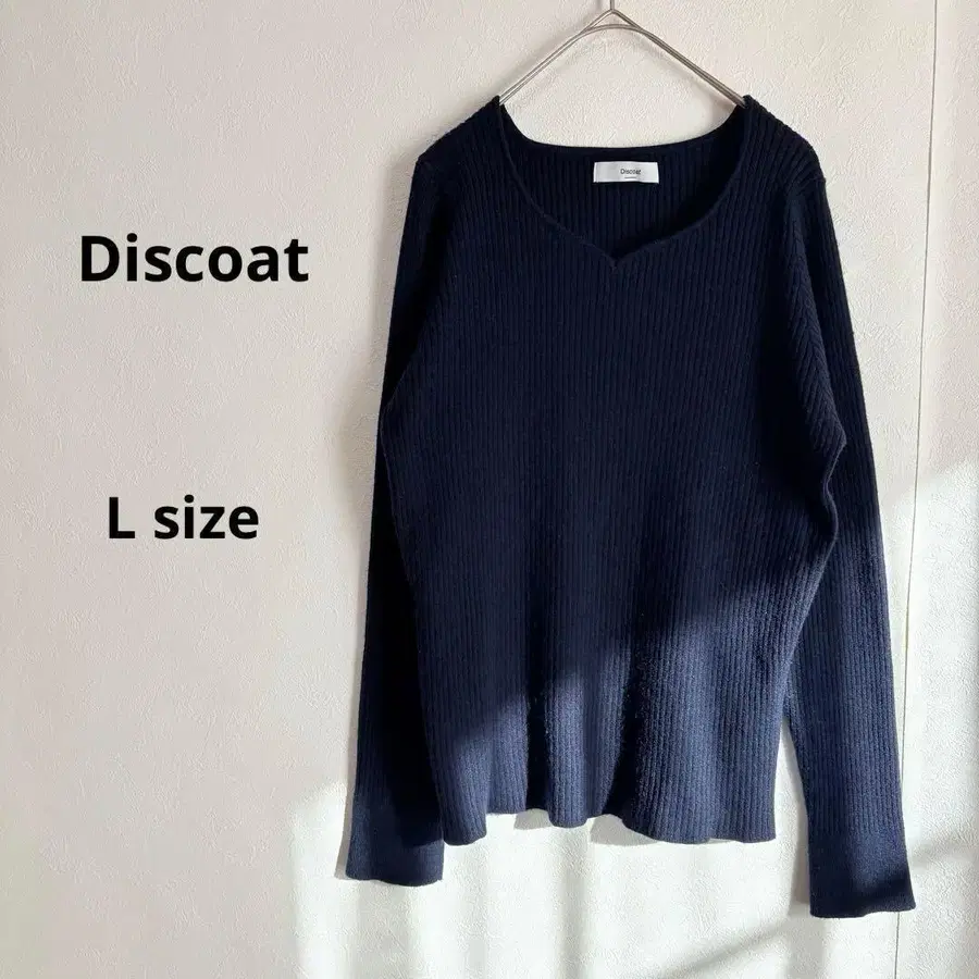 Discoat 디스코트 리브 니트 L 네이비 긴팔 V넥