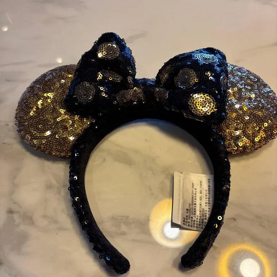 상하이 디즈니 미키 귀 머리띠 블랙과 금색 스팽글
