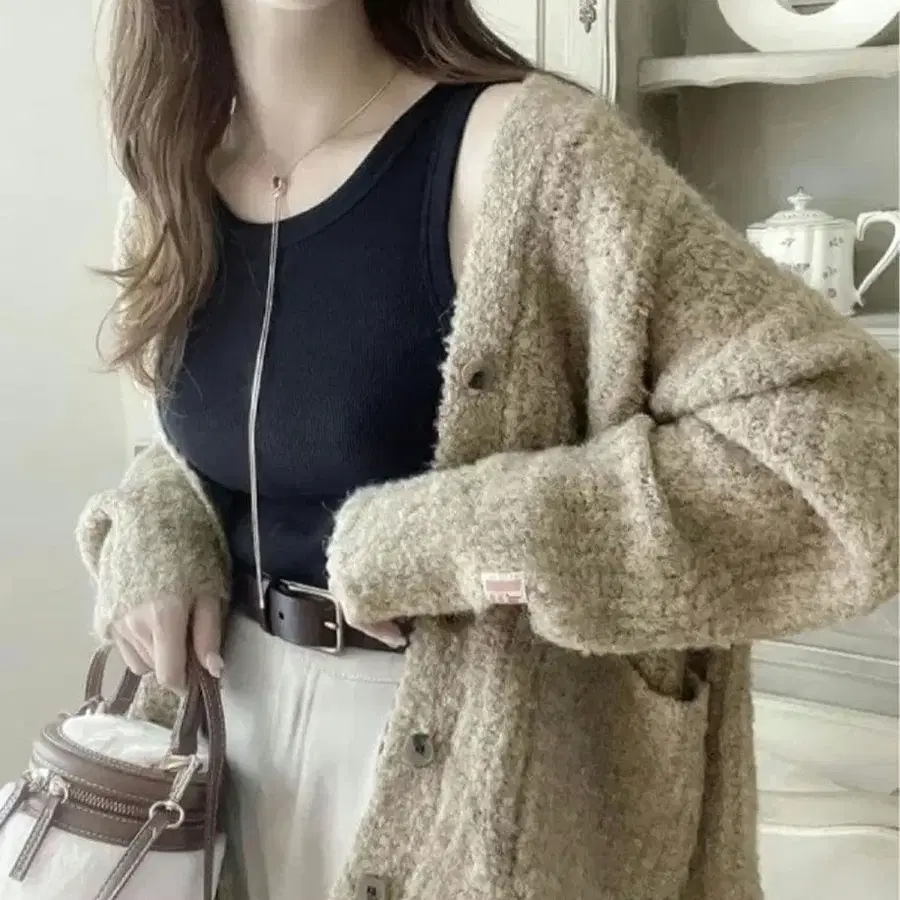 [ JAVA 자바 별주 ] 부클레 V넥 가디건 M 베이지 미사용 새상품