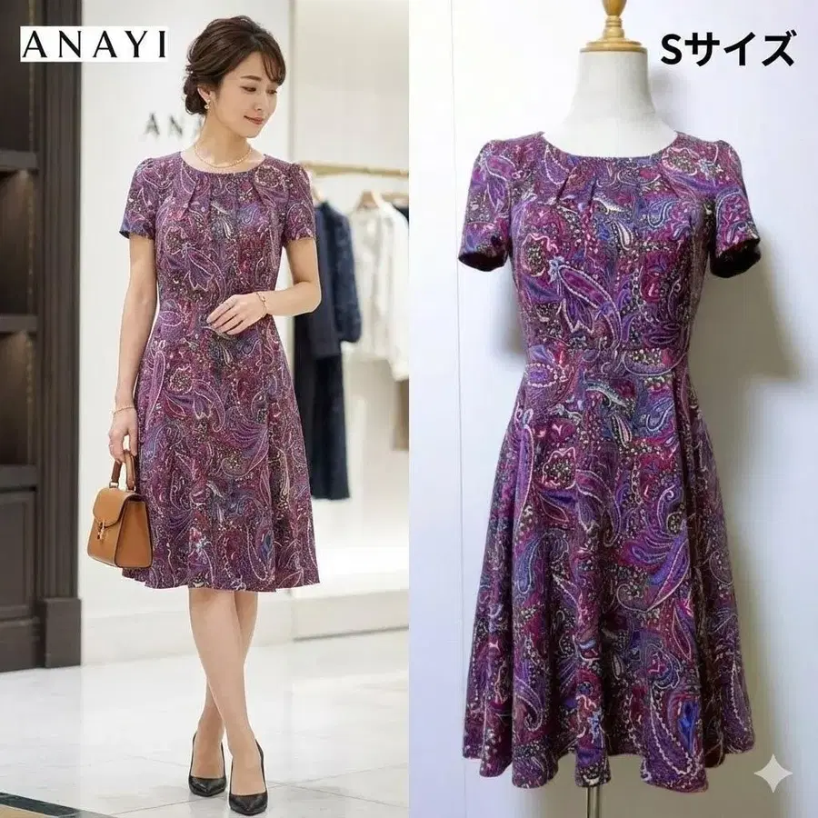 [새상품급] ANAYI 아나이 페이즐리 무늬 플레어 원피스 퍼플 올 패턴