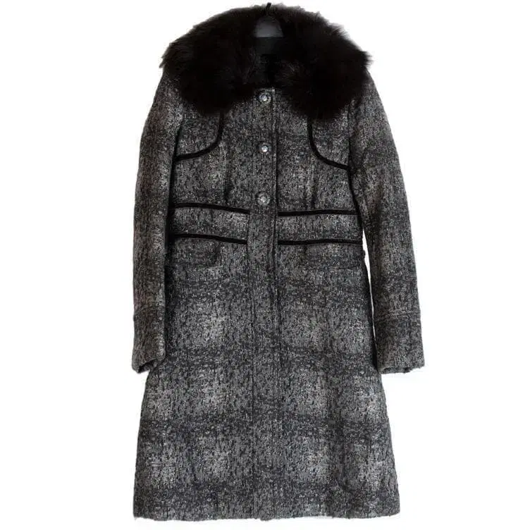 질스튜어트 퍼 A라인 울 코트 블랙 S사이즈 라메