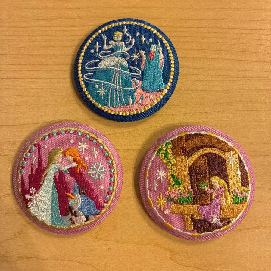 디즈니 자수 캔뱃지 프린세스 핀 배지 3개 세트