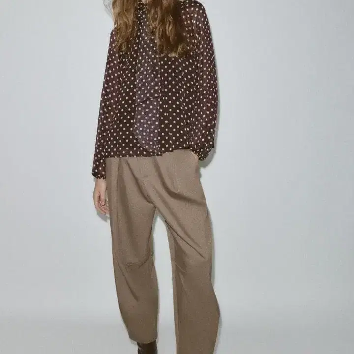 ZARA 리본 포함 도트 무늬 블라우스 L 사이즈