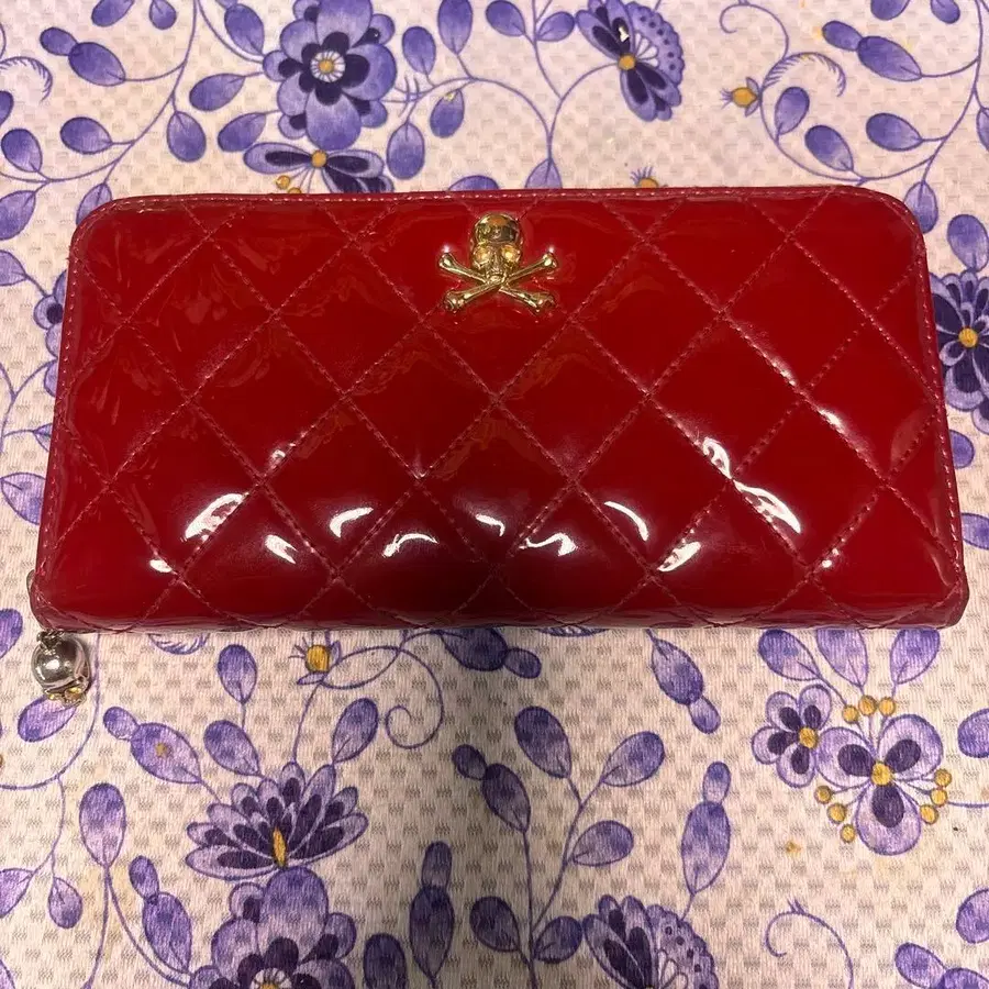 로엔 빨간색 에나멜 퀼팅 장지갑