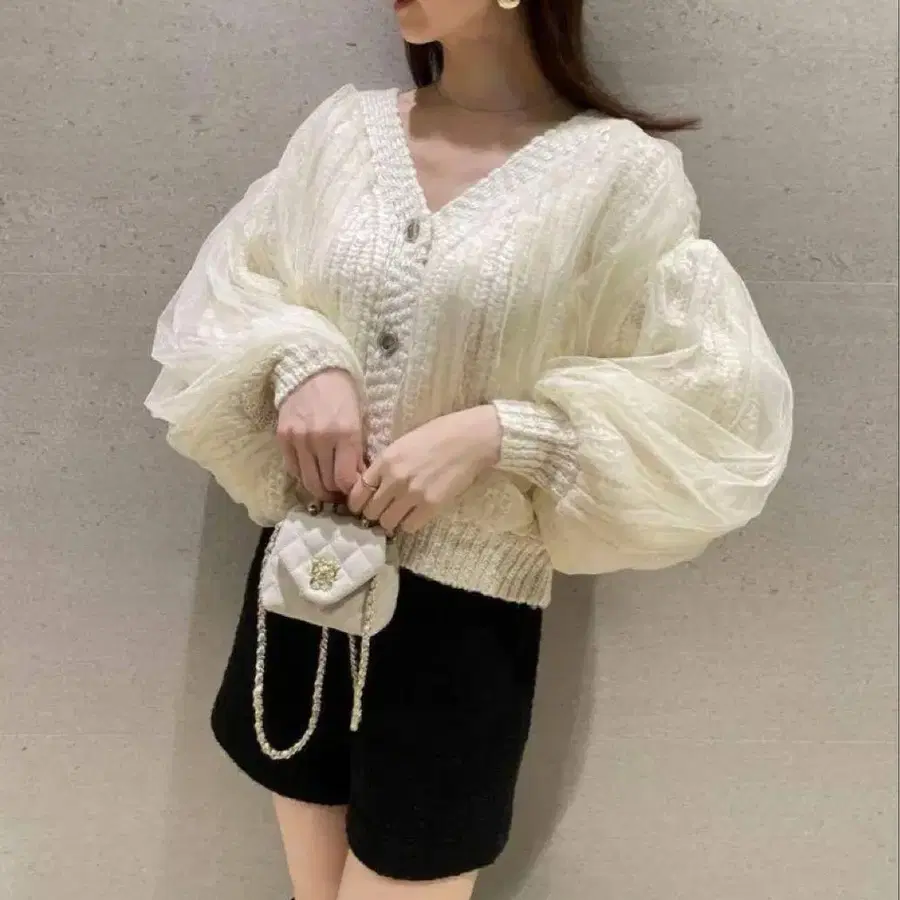 snidel 스나이델 튤 레이어드 가디건 아이보리