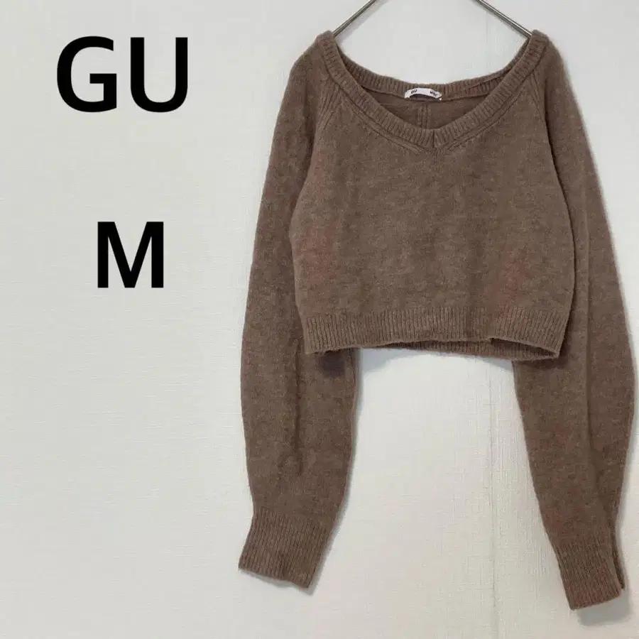지유 GU 크롭 긴팔 니트 스웨터 [ M ] V넥 귀여운